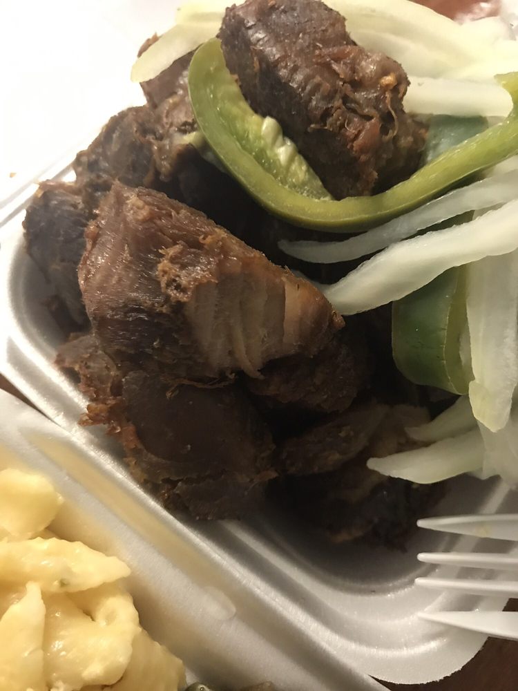 Goat is seasoned and slowly cooked until tender then fried and topped with onion and bell pepper vinaigrette.